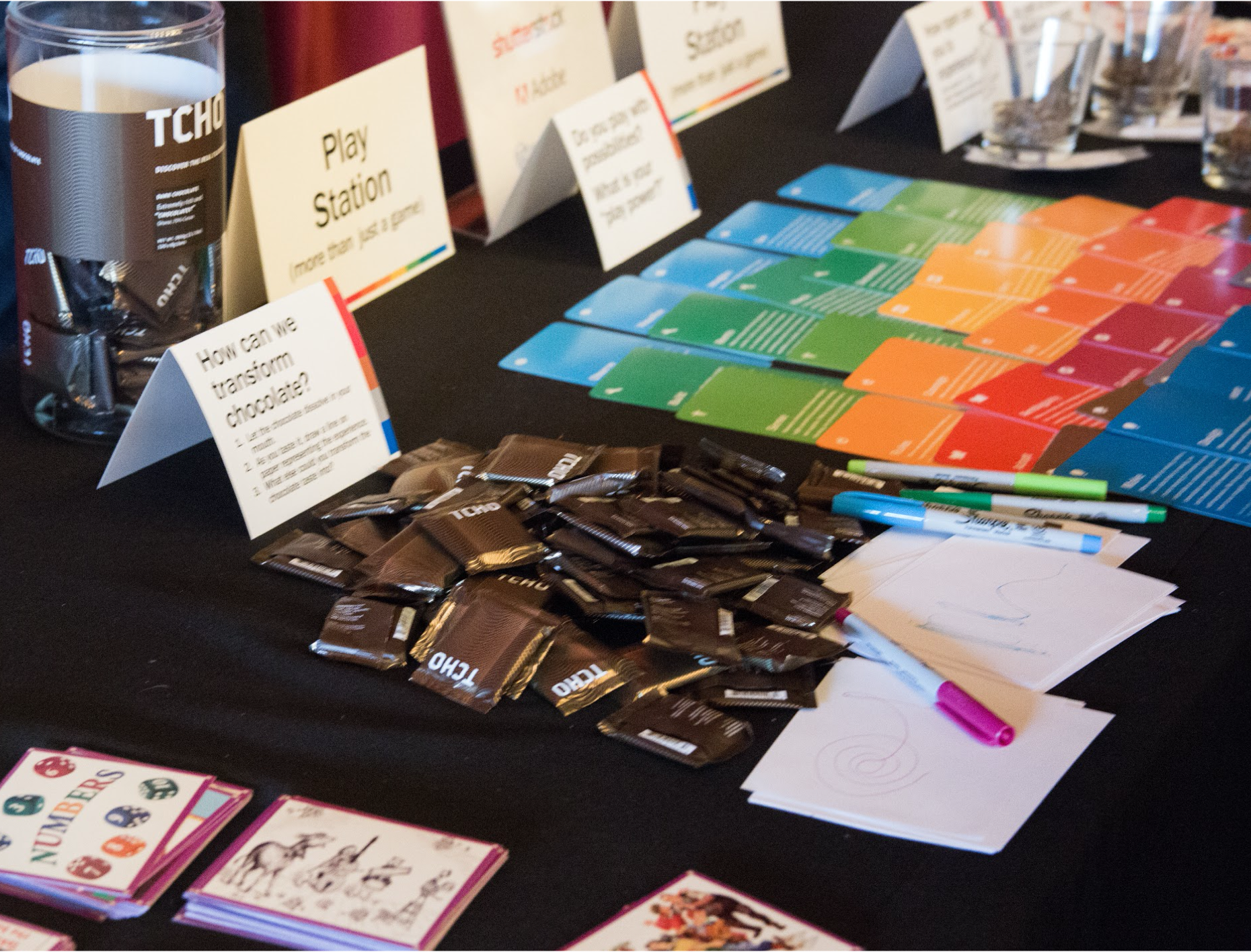 Laura Seargeant Richardson’s table setup as a “Play Station,” before her Creative Mornings talk in 2018.